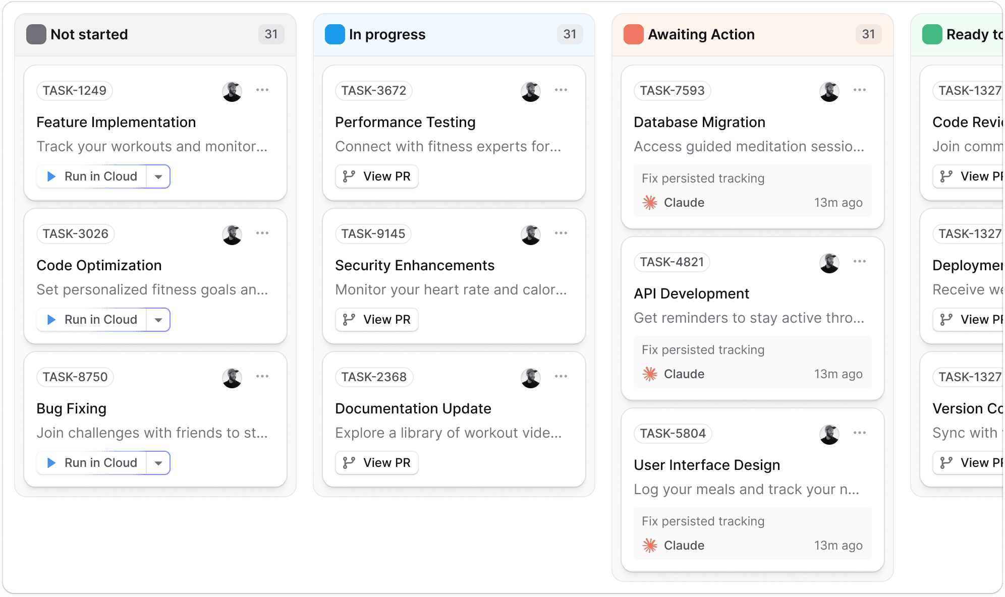 Run, monitor, and see progress of parallel agents you run either in the cloud or locally.