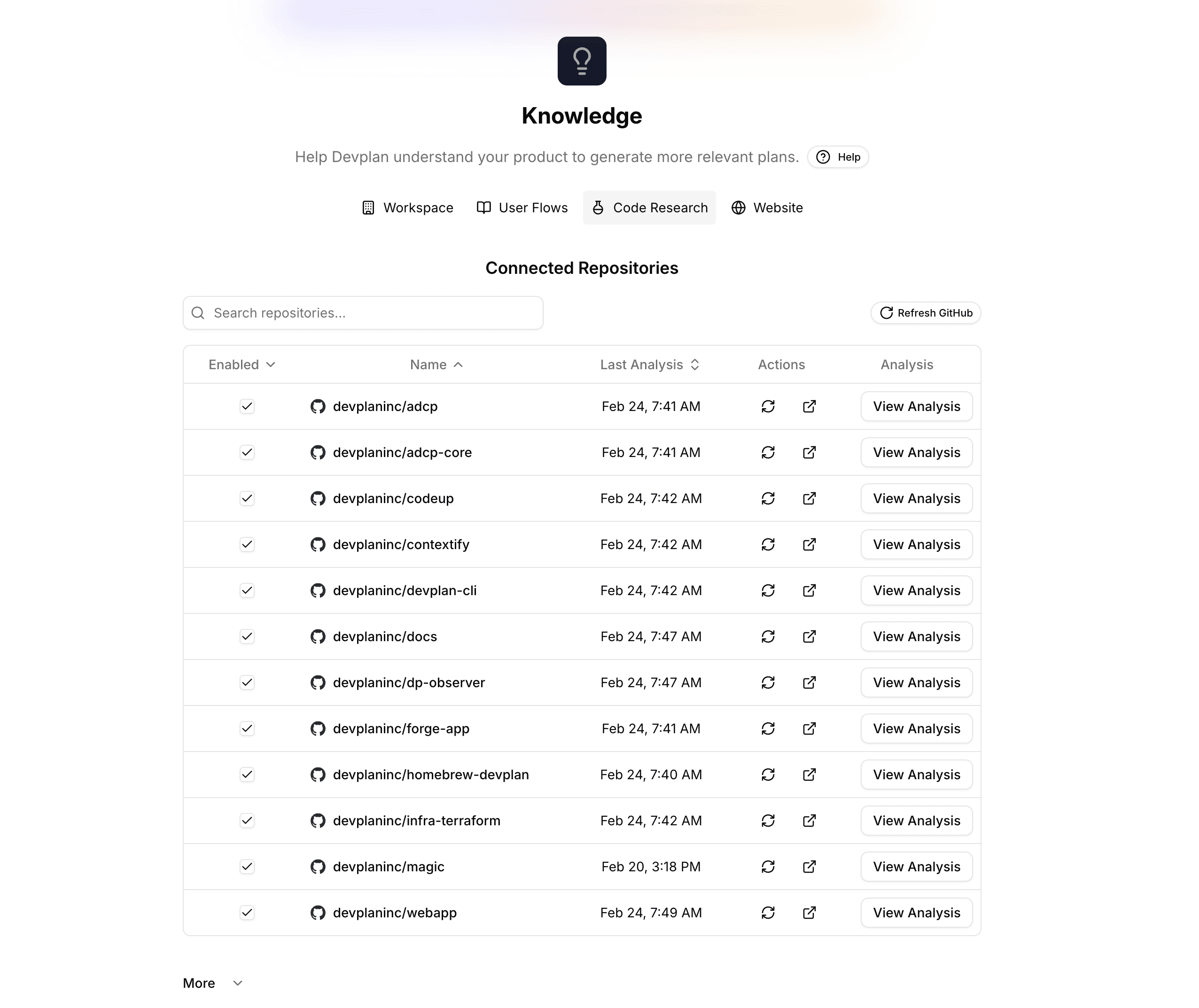 Your developers shouldn't have to re-explain your product to every AI tool they use. Devplan generates context-rich prompts and specs once, so agents work from a shared foundation every time.