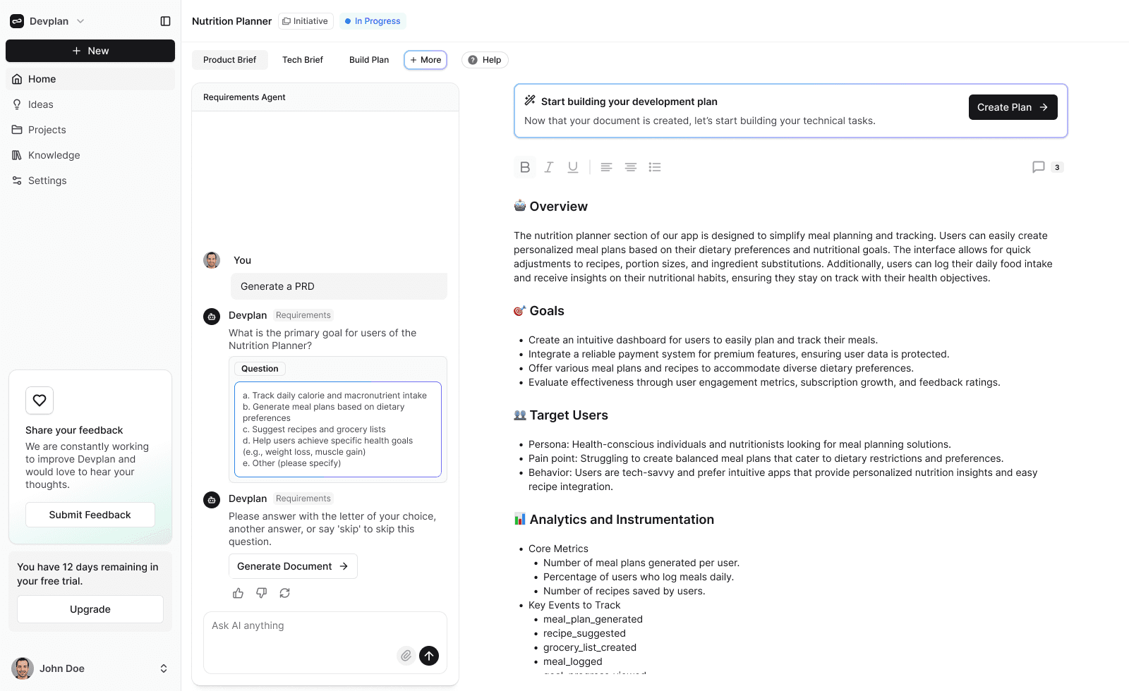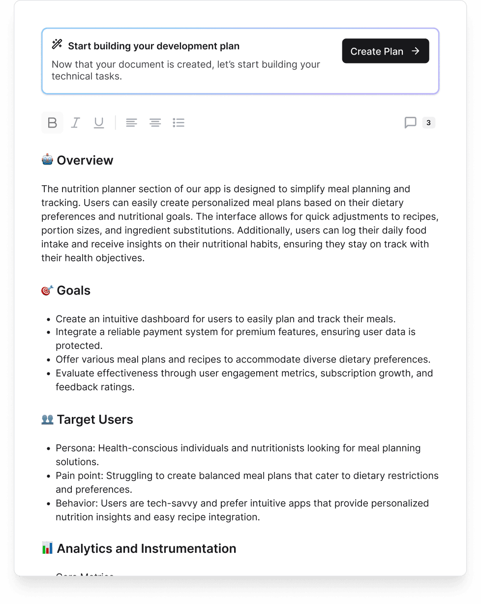Create better PRDs, user stories and roadmaps in less time.